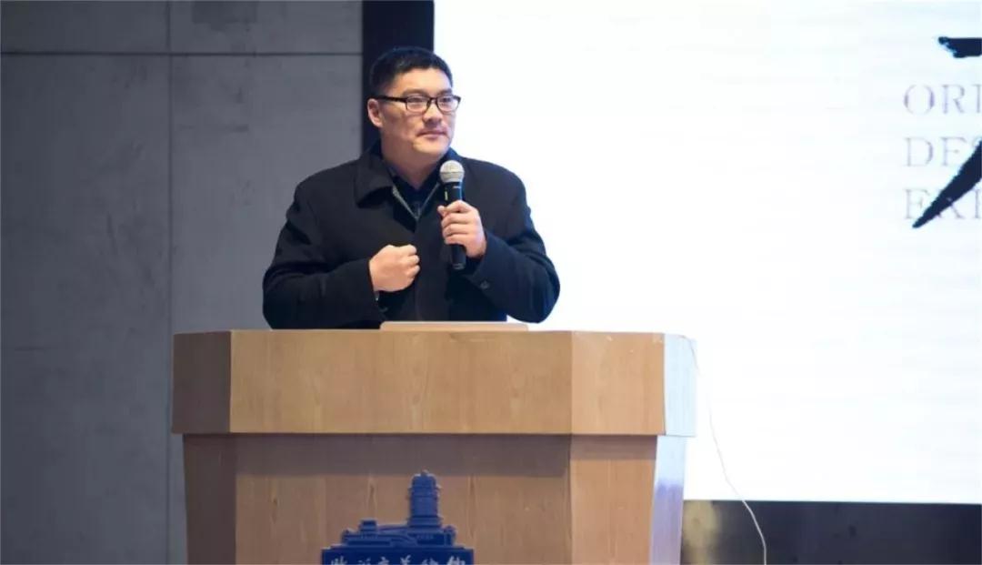 ▲ 临沂美术馆馆长胡后彬上台致辞。
